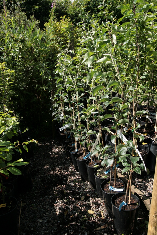 (‘Lorette pruning’), or next winter if you forget! You can allow your laterals to branch to fill the space a little, such as if theres a gap in your tree you want to fill. Tie a higher one down to fill a space if necessary. Keep the pyramidal shape by pruning harder if necessary your top laterals. Each tree should yield 10 lbs of fruit by the 4th year. The original spacing recommended was 10 feet ( 3m) and 435 trees per acre. In you have an acre, you could be producing 4.3 tonnes of fruit by your 4th year! Using an m26 rootstock in most areas of Scotland, and tieing to stakes or wires in North-South lines is probably ideal. A modification is the Tall Spindle, which is allowed to grow to 3m and planted 1m x 3m spacings. It must have up to 10 short feathers ( branches) already from the nursery. Visit your nurseryman and select your trees personally!